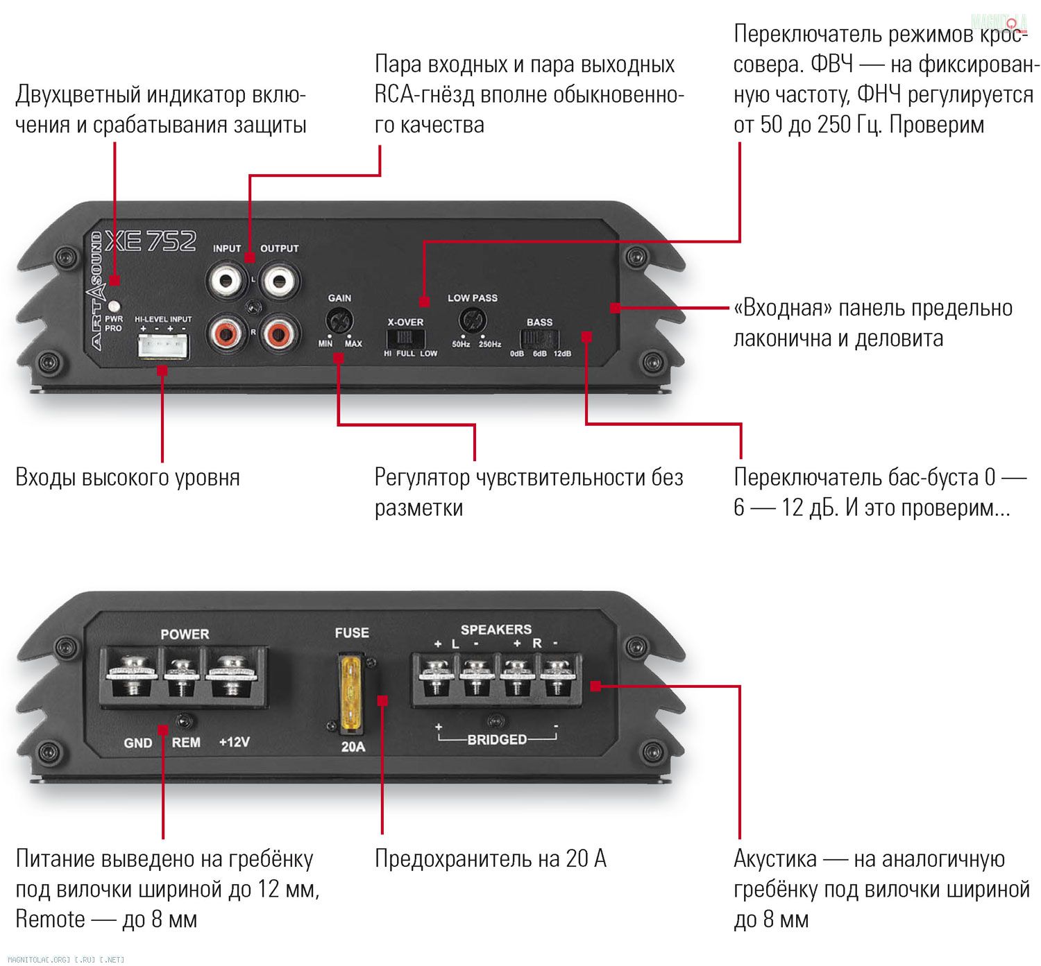 Усилитель смонтирован в «цельнотянутом» алюминиевом корпусе. С торцов на винтах под шестигранник — металлические панели с пластиковой окантовкой, они же — кронштейны для крепления.Максимальная мощность (12,5 В, КНИ = 1%, 4 Ом/2 Ом), Вт 47/72